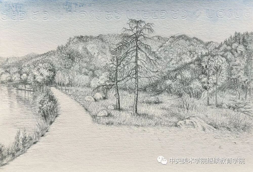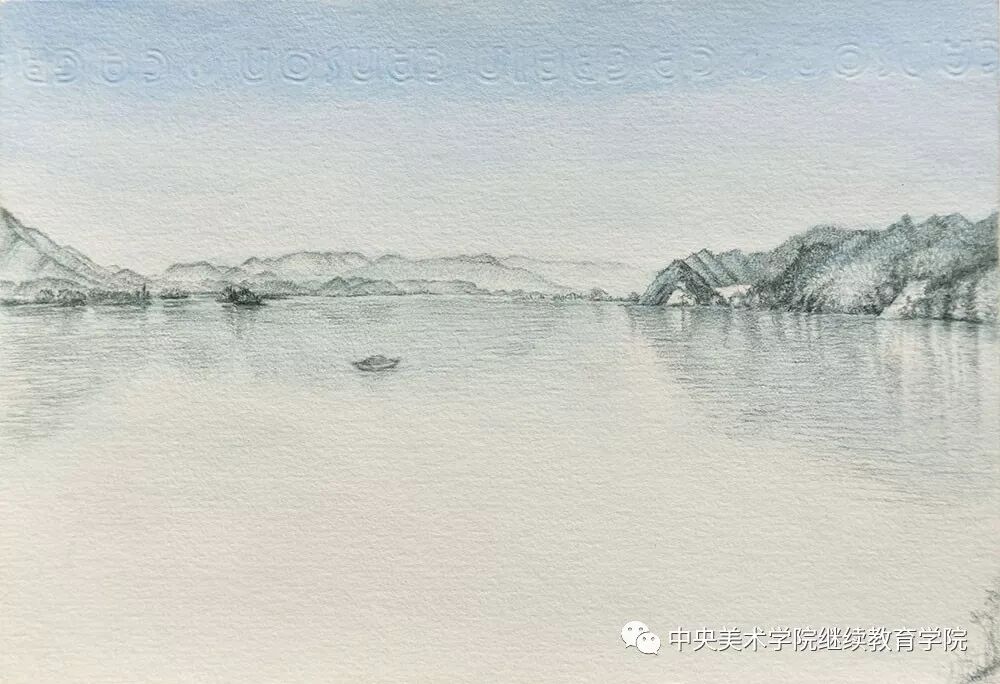 《富春江写生》 材料:铅笔 作者:郭雨辉(湖南)