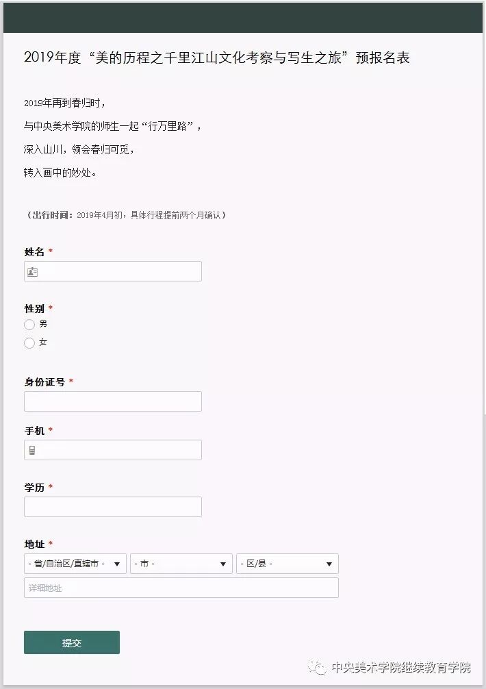 此与报名表仅作信息采集之用,以便后续推送游学的相关信息,正式报名与缴费以中央美术学院官网或官方微信发布的消息为准。识别以下二维码,即可轻松在线预报名。